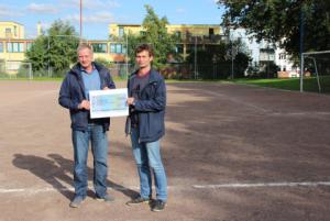 Am 25. September überreichte der Landtagsabgeordnete der Partei DIE LINKE, Swen Knöchel, an unseren Fördervereinsvorsitzenden Sven Ziegler symbolisch einen Scheck zur Förderung des Kunstrasenprojektes. Mit 500 Euro wird das Projekt aus dem Solidarfonds der Abgeordneten der Fraktion DIE LINKE unterstützt.