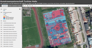 Auf unserem virtuellen Kunstrasenmodell ist die Nordhälfte bereits ausverkauft und sind noch 561 m² frei. Wer Teil unseres Projektes zur Förderung des Breitensports im Giebichenstein werden möchte, kann sich also auf 8 % der Spielfläche noch eine Patenschaft sichern.