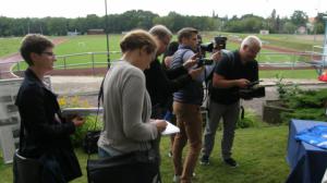 Der Dank galt auch dem anwesenden Vorstandsvorsitzenden der Saalesparkasse, Dr. Jürgen Fox, dessen Einrichtung von Beginn an das Vorhaben unterstützt und gefördert hat und somit einen wesentlichen Anteil zur Umsetzung der 2014 von einigen Vereinsmitgliedern geborenen Idee beitrug. Der so oft erhoffte und erwartete „Tieflader“ mit den Fördergeldscheinen ist somit tatsächlich und unter aller Augen des Turbinevorstands auf dem Areal der Felsenkicker eingetroffen. Jetzt gilt es, die älteste Staublunge der Stadt in eine moderne Plastikwiese zu verwandeln, um endlich im Giebichensteinviertel für alle ambitionierten Breitensport-Vereinssportler angemessene Trainings-und Wettkampfbedingungen zu schaffen.