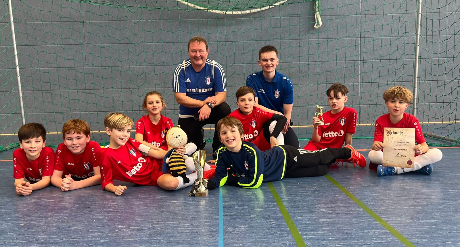 Den dritten Hallentitel in Folge holten am Sonntag unsere E1-Junioren. In der Wettiner Sporthalle setzte man sich nach erfolgreicher Gruppenphase im Halbfinale gegen die JSG Petersberg durch. Spannend wurde es im Endspiel, das Turbine im 9m-Schießen gegen die JSG Nördlicher Saalekreis gewinnen konnte. Herzlichen Glückwunsch an unsere E1.
