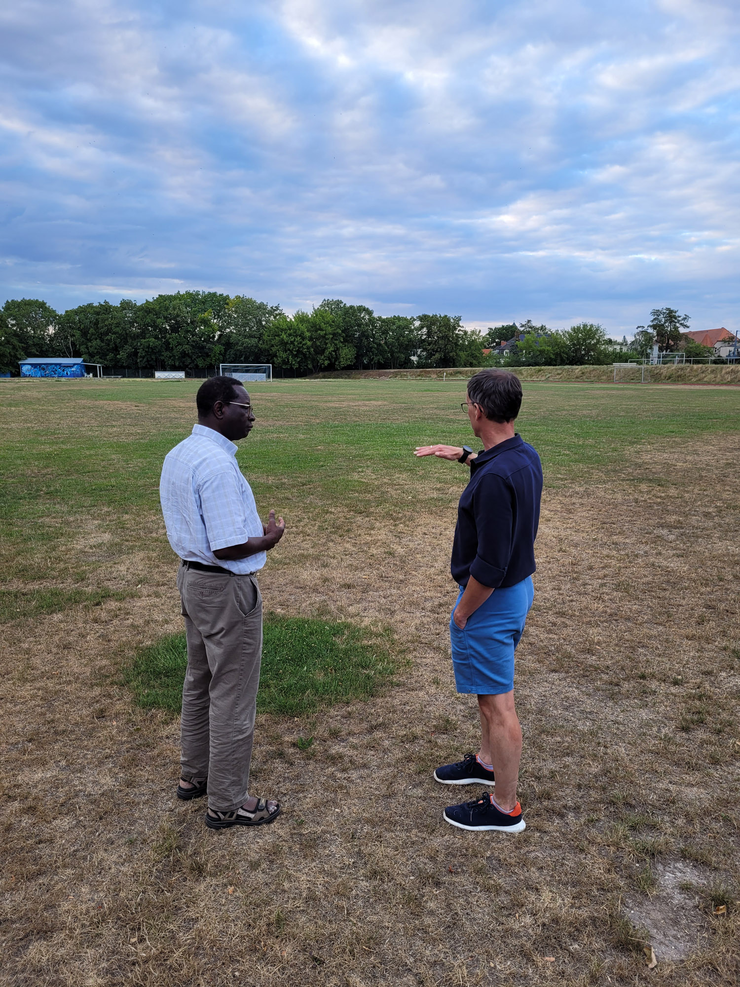 Und natürlich durfte die Schilderung der katastrophalen Bewässerungssituation auf der Sportanlage nicht fehlen, die durch die willkürliche Kappung der Brauchwasserleitung von der Saale zum Sportplatz im Zuge der Sanierung der Riveuferpromenade entstanden ist. Auch wenn mittlerweile eine provisorische Zuleitung errichtet wurde, die nach etlichen vergeblichen Versuchen seit heute auch funktioniert, sind die Schäden auf dem Sportplatz bereits beträchtlich. Die Hilflosigkeit unseres Vereins (trotz massiver Bemühungen) gegenüber dem (Nicht)Handeln verschiedener Bereiche der Stadtverwaltung wurde sehr detailliert geschildert und mit sehr großer Verwunderung durch unsere Gäste aufgenommen. Das Versprechen der Vertreter der SPD-Fraktion, von politischer Seite bei der Verwaltung dranzubleiben und nachzuhaken nehmen wir sehr gerne an.