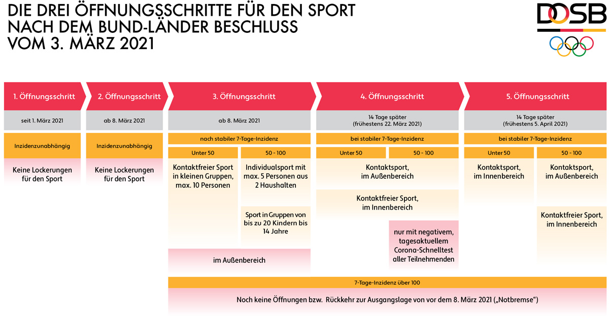 Die Bund-Länder-Konferenz hat festgelegt, dass ab dem 8.März im Rahmen des 3.Öffnungsschrittes zumindest Sport in Gruppen für Kinder bis 14 Jahren möglich sein soll. Voraussetzung hierfür ist eine stabile 7-Tage-Inzidenz unter 100. Hier liegt der wichtigste Knackpunkt: Gilt der Inzidenzwert des Landes Sachsen-Anhalt (derzeit bei 86) oder der Wert der Stadt Halle (derzeit 118)? Außerdem ist die Frage offen, ob die Stadt Halle eigene Kriterien für die Wiederaufnahme des Sports festlegen wird.
