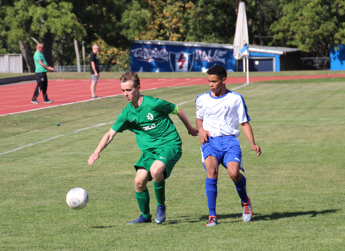 Durch eine späte Leistungssteigerung demontieren unsere A-Junioren die SG HTB Halle und bauen ihre Spitzenposition in der Landesliga nach dem 8:1-Sieg weiter aus. Dabei zeigten sich die Gäste vor allem in der 1.Halbzeit als ebenbürtiger Gegner, dem offensiv aber die Durchschlagskraft fehlte. Die Offensivmaschine der Felsenkicker kam erst nach dem Anschlusstreffer der Gäste in der 62.Minute ins Rollen und schoss ein halbes Dutzend Treffer.