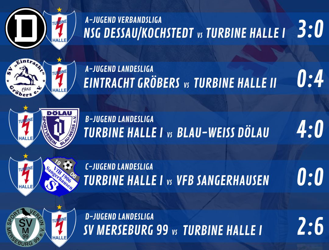 Am Wochenende sind auch die letzten unserer Nachwuchsteams in die Punktspiele eingestiegen. Neun Mannschaften kämpften um Tore und Punkte, davon verließen sieben Turbine-Teams als Sieger den Platz. Sehr ordentlich in der Landesliga angekommen sind unsere C- und D-Junioren. Nach dem starken Remis gegen den VfB Sangerhausen konnte die C1-Jugend durch einen Doppelpack von Johannes V. sowie einen Treffer durch Ede B. den SV Blau-Weiß Dölau mit 3:1 besiegen.